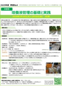 【研修No.4】〈対面型〉培養液管理の基礎と実践